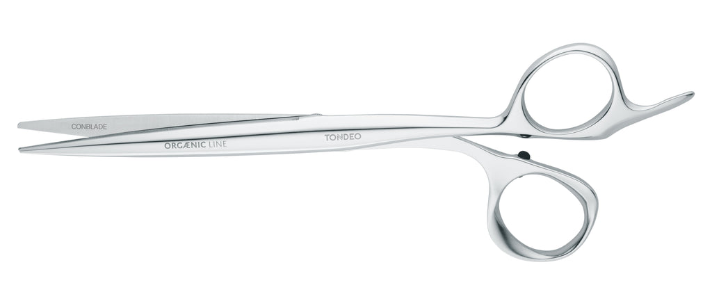 The TONDEO ORÆNIC LINE 6.5" hairdressing scissors are expertly crafted to enhance the natural texture and style of hair. These scissors are ideal for those seeking an organic haircut that allows the hair to fall effortlessly. This impeccable design showcases exceptional craftsmanship and reflects the premium quality that is synonymous with our PREMIUM-LINE range.